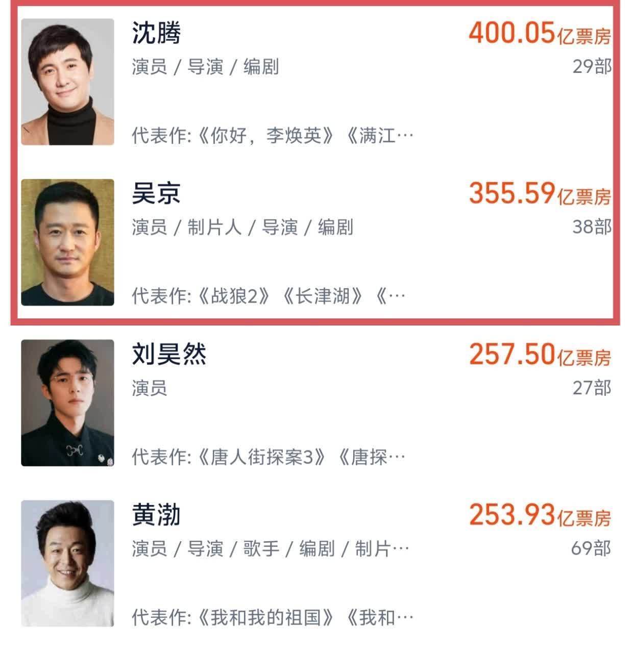 春节档正式拉开序幕之前,吴京主演的电影总票房是347.21亿,沈腾是369.81亿,俩人仅差22.6亿。